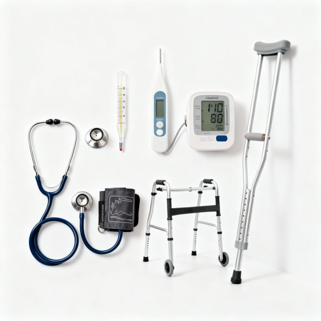 Supportive gear like stethoscopes, thermometers, and mobility aids—enhancing care delivery across departments.
